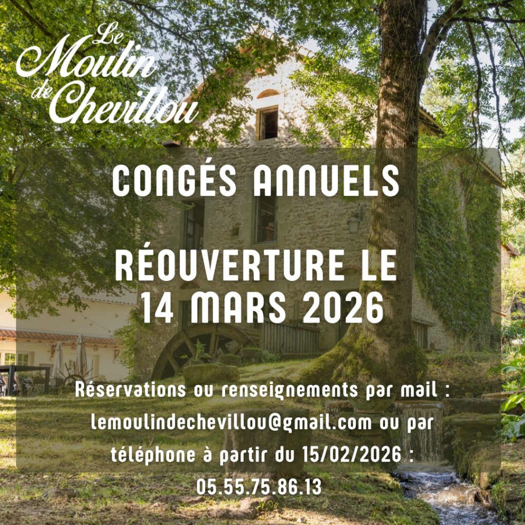 Le restaurant vous propose des cartes cadeaux du montant de votre choix pour les fêtes ainsi que pour toutes vos occasions. Pour se procurer une carte, rien de plus simple ! Envoyez-nous un mail à lemoulindechevillou@gmail.com ou téléphonez-nous au 05.55.75.86.13. Nous proposons des cartes physiques mais également dématérialisées si vous n’avez pas la possibilité de vous déplacer.